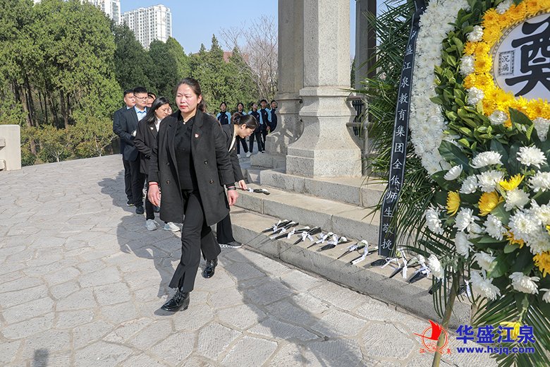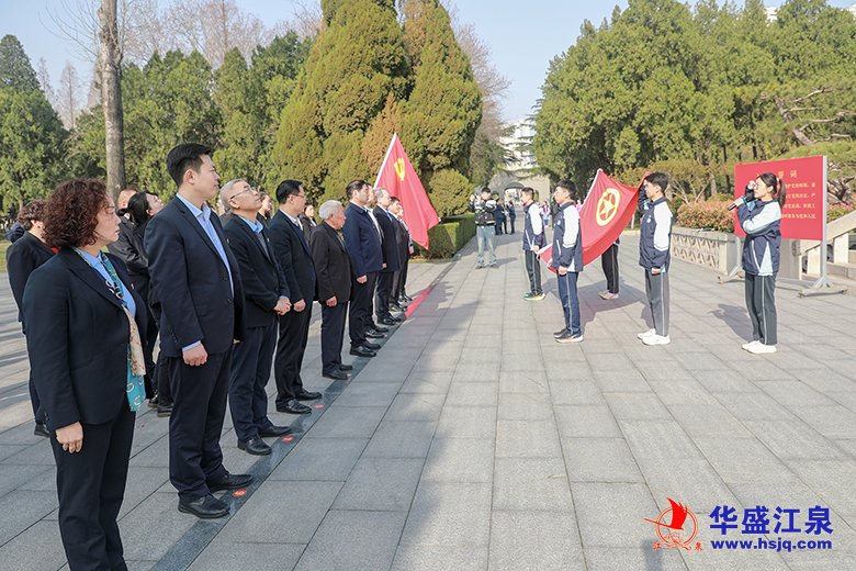 清明節即將來臨之際,3月29日上午,華盛江泉教育集團黨總支與“雙報到”聯系點沈泉莊社區聯合行動,共同前往臨沂市華東革命烈士陵園,開展“清明時節祭先烈,緬懷忠魂礪初心”主題教育。此次活動由華盛江泉集團黨委書記、總經理高洪路親自指導,沈泉莊黨委書記、華盛江泉集團常務副總經理、財務總監張毅,華盛江泉教育集團黨總支書記、董事長汪會昌,以及教育集團黨總支成員、黨員代表、團員代表、少先隊員代表、“雙報到”社區人員等共同參與。